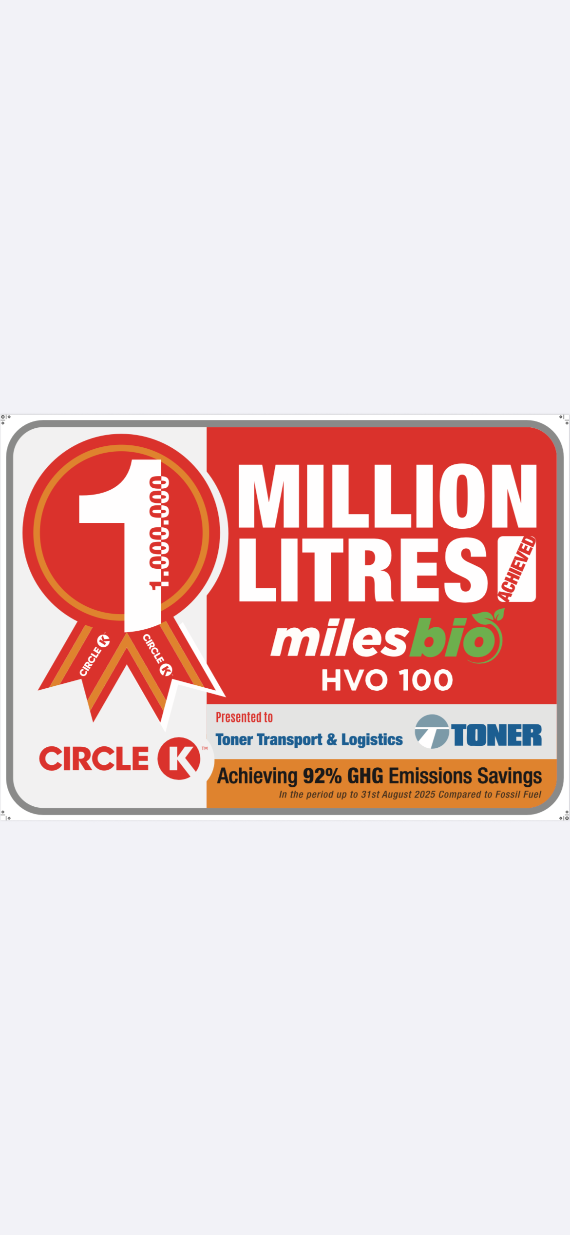 At Toner Transport & Logistics, we’re proud to have reached a major sustainability milestone — using over 1 million litres of HVO (Hydrotreated Vegetable Oil) fuel across our fleet. This achievement has enabled us to reduce our carbon emissions by up to 92%, marking a significant step forward in our commitment to a cleaner, greener future for Irish transport. As a family business with deep roots in the industry, we’re dedicated to investing in sustainable solutions that protect our environment for generations to come.